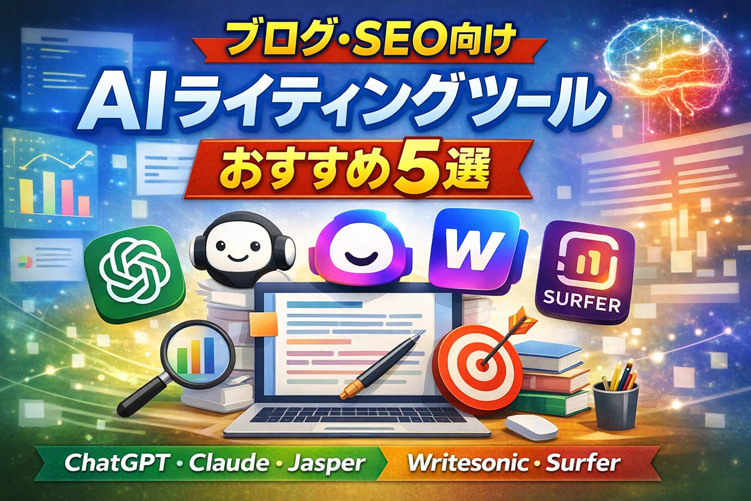 この5つは、同じAIライティングツールでも役割が異なります。幅広く書くならChatGPT、自然な長文ならClaude、ブランド運用ならJasper、SEOとAI検索の両方を意識するならWritesonic、検索向けの調整を重視するならSurfer、という見方をすると選びやすくなります。